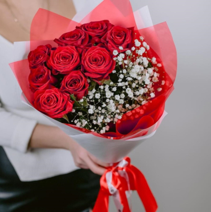 Букет из красных роз и гипсофилы | Купить в Рио-де-Жанейро